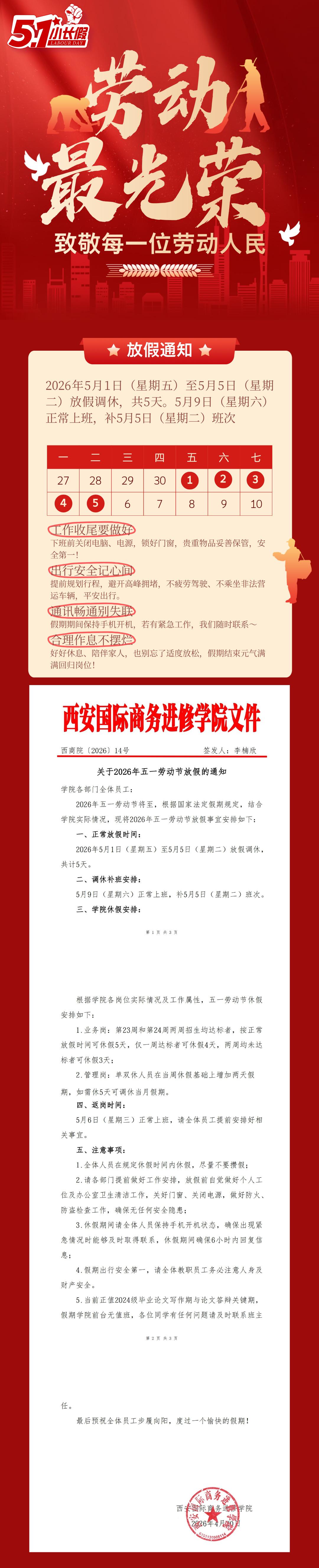五一劳动节放假通知!!!
