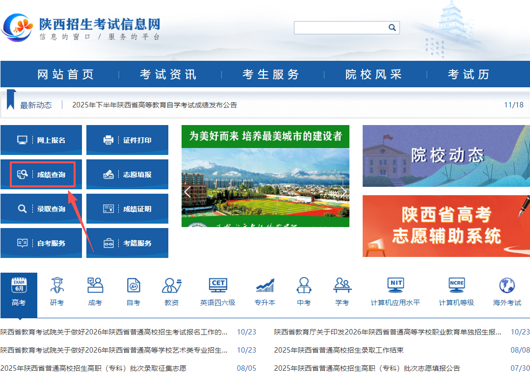 2025年陕西省成人高校招生全国统一考试成绩已发布,考生可通过以下方式查询考试成绩。