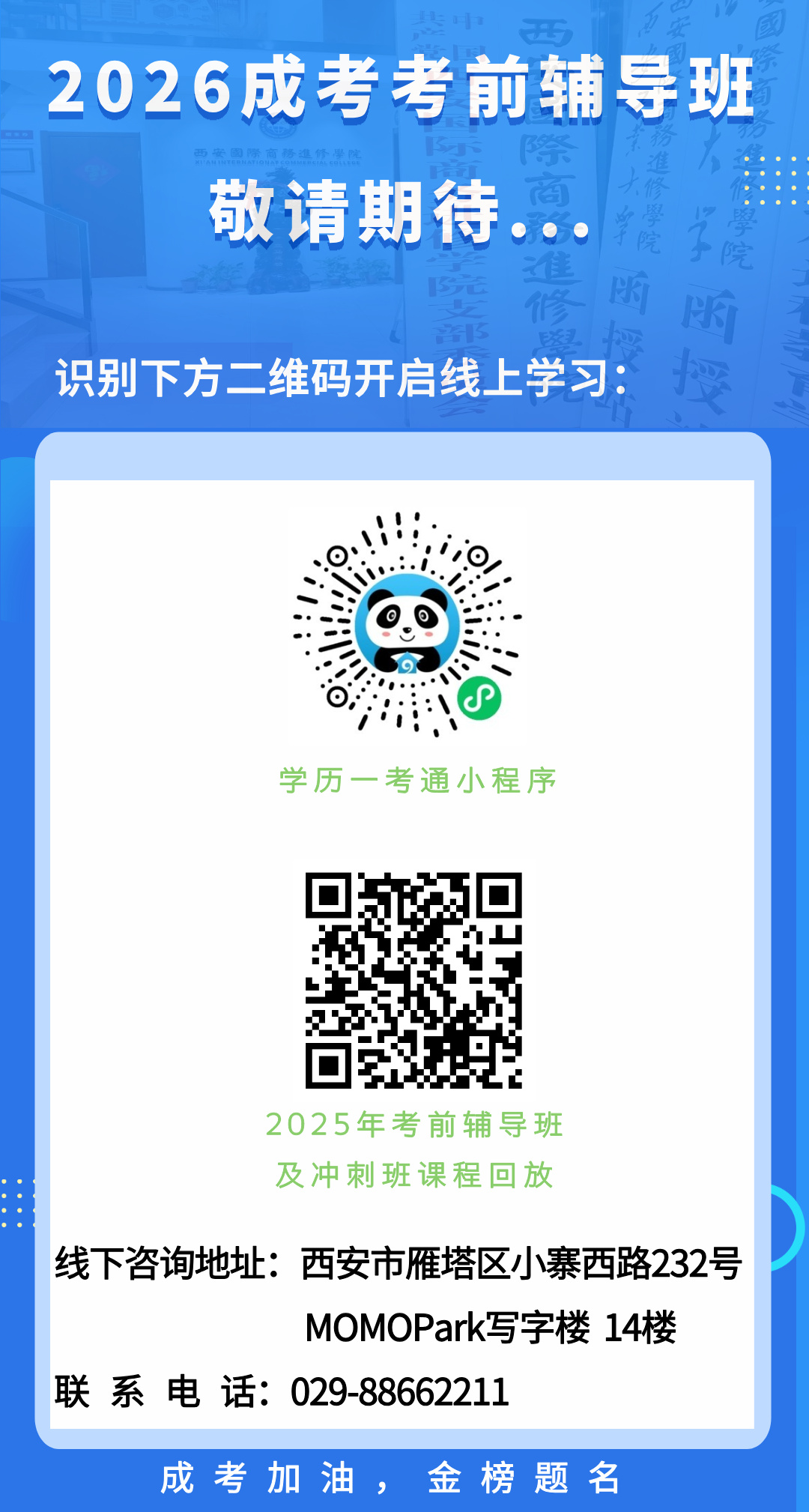 2026年成人高考考前面授班暂未开班,请前往”学历一考通“小程序学习!